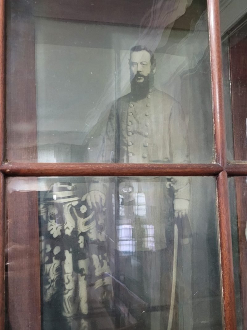 Portrait of Alfred Mouton in Confederate uniform on display at Lafayette Museum