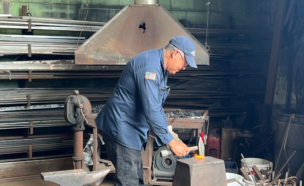 When I visited, the workshop pulsed with heat and history. Flames hissed as metal reached temperatures above 2,100 degrees, glowing orange beneath Darryl’s hammer. He worked beside apprentice Karina Roca, who had discovered his work through a PBS documentary. She arrived unannounced, inspired and determined to learn the craft.